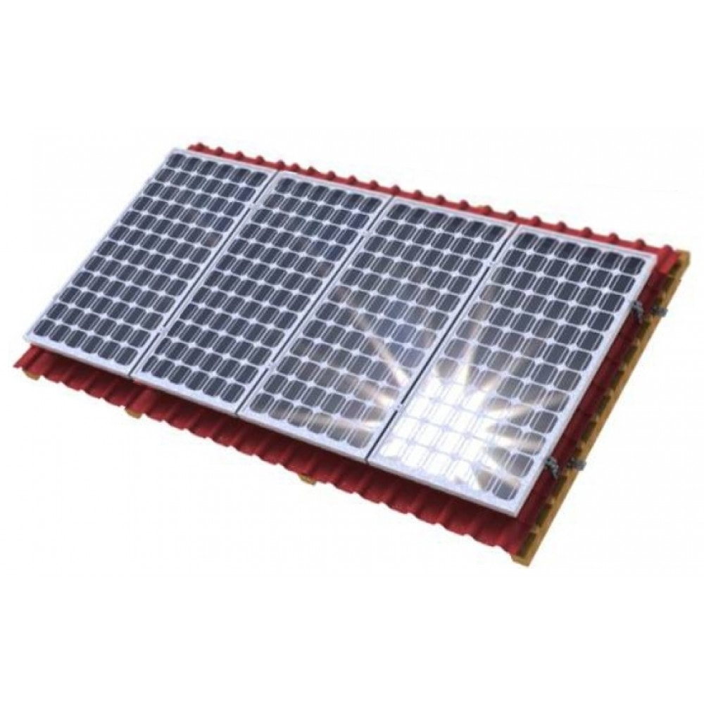 Данный комплект предназначен для монтажа солнечных батарей на плоской наклонной крыше (мягкая черепица), либо металлочерепице в три ряда.
